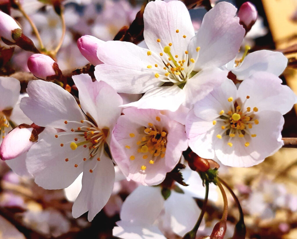 Michiko watched Hitoshi setting off to the village. He paused at the corner and waved his walking cane, though he knew his wife wouldn’t go back inside. She’d lower her stooping figure onto the bench beneath their cherry tree, waiting for his safe return.
